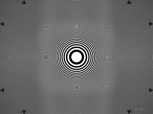动态分辨率测试卡TE114是专门为检测TV摄像机分辨率特性以及TV传输系统“串色”干扰而研发的。测试卡由一个波带片分布满整个图像区域,其中图像上的环以线性增加的空间频率向外扩展。图像上水平方向边缘的空间频率可以达到8MHz,垂直方向边缘的空间频率达到6MHz。测试卡的角落的空间频率为10MHz。