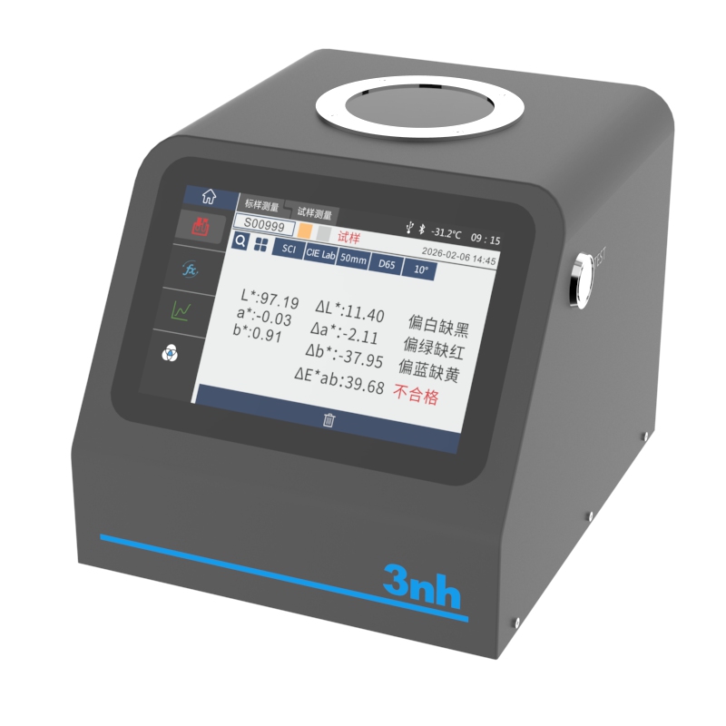 2、直观可视化操作:配备7英寸TFT真彩电容触摸屏,可直接显示光谱图/数据、样品色度值、色差值/图、合格/不合格结果、颜色偏向,无需外接设备即可完成测量结果的直观判读。