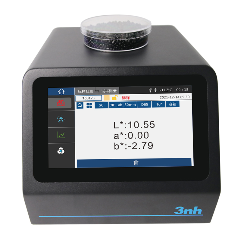 2、直观可视化操作:配备7英寸TFT真彩电容触摸屏,可直接显示光谱图/数据、样品色度值、色差值/图、合格/不合格结果、颜色偏向,无需外接设备即可完成测量结果的直观判读。