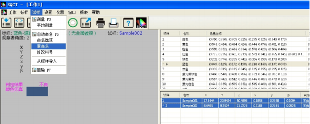 同时可以通过“试样->重命名/删除”对测试试样进行重命名和删除操作。