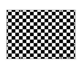 Similar to a chessboard the test charts is composed of 13 x 18 black and white square fields which are surrounded by rectangular fields at the edges that correspond to the 14/19 grid raster lines of electronic test generators. (The division of the horizontal grid lines of these generators corresponds to 42 lines per complete picture.)