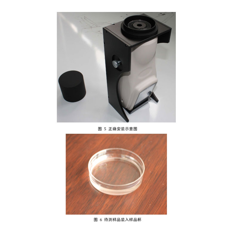 3、测量过程中,样品杯装入测量黑腔时务必要小心,不得使样品外溅,不得弄脏测色仪透镜及内部光路,否则导致测色仪无法正常工作。